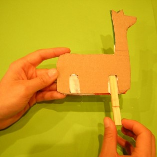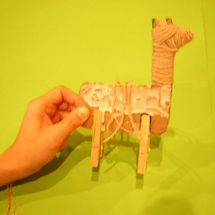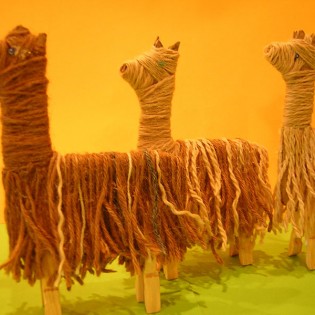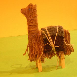 Para terminar tu llama pégale un ojo de mostacilla. ¡Puedes hacer varias llamas y jugar a las caravanas que atraviesan los Andes. Para esto haz las otras actividades: “Haciendo un caravanero” y “Haciendo un bolso tejido a telar”.