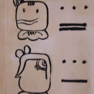 Los glifos se leían de izquierda a derecha y de arriba hacia abajo, leyendo primero la sección horizontal superior y luego la inferior. Tienes que escribir siguiendo ese orden para contar tu historia. Dibuja los glifos partiendo en el lado izquierdo superior, con lápiz negro y después pinta con témpera negra o scripto negro.