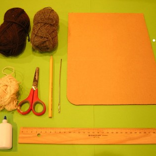 Un cartón corrugado de aproximadamente 30 x 25 cms., una regla, una aguja de lana, un lápiz, una tijera, dos o tres ovillos chicos de lanas de colores.