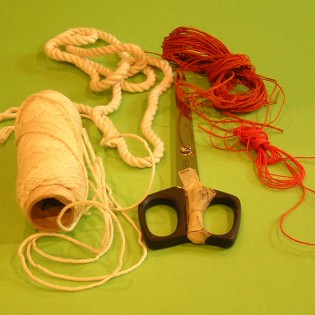 -Una cuerda de algodón de 1 centímetro de grosor y 70 centímetros de largo. (Para hacer la cuerda primaria)