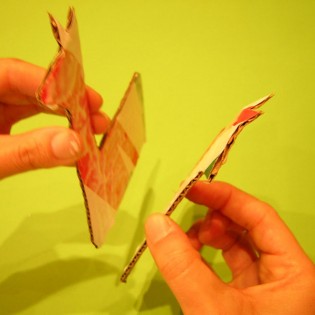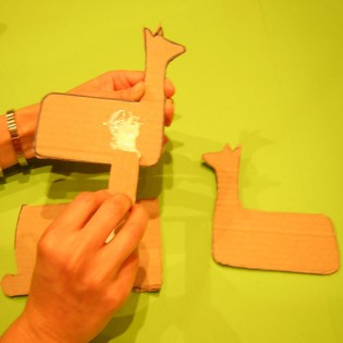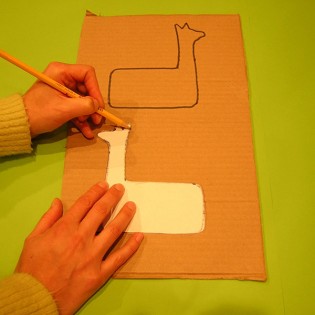 Corta el molde y márcalo con un lápiz sobre el cartón. Da vuelta el molde y márcalo en otro pedazo del cartón. No olvides marcar la posición de las patas.