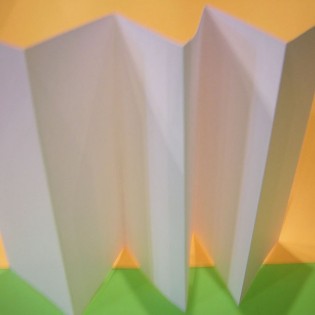 Divide la hoja en 6 partes iguales y dóblalas una vez hacia adentro y otra vez hacia fuera, como muestra la fotografía.