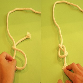 Nudo simple: Toma la cuerda de algodón de 0.5 centímetros de grosor y haz un nudo simple siguiendo los pasos de las fotografías.