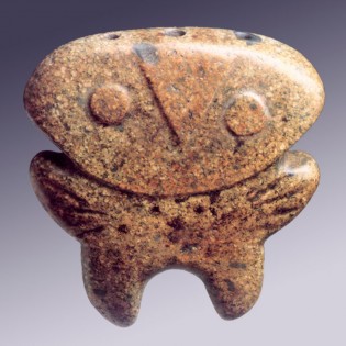 Este búho de piedra de la cultura Mapuche es una flauta y, al mismo tiempo, una pipa. Se cree que en algunas ceremonias el chamán usaba esta piedra alternando su uso como pipa y como flauta, invocando los poderes mágicos del búho.