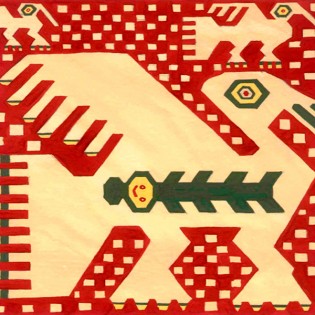 La serpiente ha sido representada en muchas de las culturas andinas como una criatura fantástica, formando parte de otros animales, y de los atuendos y cabellos de hombres fantásticos. Estas dos imágenes, un textil y un grabado en piedra, pertenecen a la cultura Chavín (1000 – 400 a.C.). En ellos vemos a dos personajes con atributos animales: colmillos de jaguar y serpientes en el pelo y en el cinturón. El uso de serpientes en vez de cabello, se debe probablemente a que al igual que el pelo crece y se renueva, las serpientes cambian y renuevan su piel.