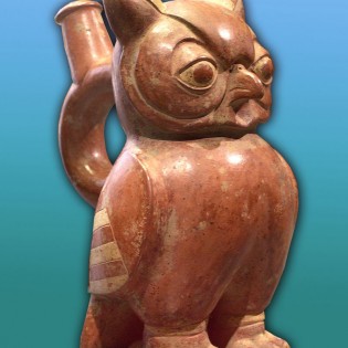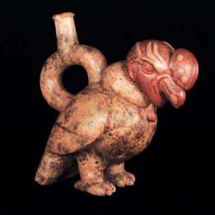 El cóndor, llamado apu kuntur en quechua, fue uno de los animales sagrados de los inkas. Ya que habitaba en la parte más alta del cielo, era el encargado de las rogativas de los hombres a los dioses y de traer los mensajes de éstos a la tierra. Los inkas consideraban al cóndor inmortal, símbolo de la fuerza y la inteligencia, y era el responsable de que el sol saliera cada mañana, pues con su energía lo tomaba y lo levantaba sobre las montañas. El cóndor de la fotografía pertenece a la cultura Moche del norte de Perú.