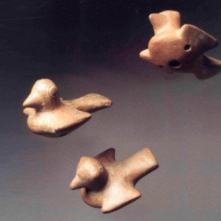 Los pájaros-ocarina de la fotografía pertenecen a la cultura Nasca de la costa sur del Perú (100 a.C.-700 d.C.).