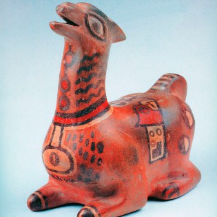 En esta pieza de la cultura Tiwanaku se ha modelado una llama que tiene en su lomo dibujada un águila.