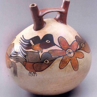 En vasijas de cerámica de la cultura Nasca de la costa sur del Perú (100 a.C.-700 d.C.) se encuentran dibujadas distintas aves. Muchas de ellas aparecen comiendo: los colibríes succionan el néctar de las flores; las aves marinas tienen en el pico pescados o moluscos; los papagayos vuelan hacia las mazorcas de maíz, o están posados sobre ellas; las lechuzas llevan en el pico serpientes o lagartijas. Los nascas dibujaban a las aves formando parte de la cadena alimenticia, donde un animal se come a otro.