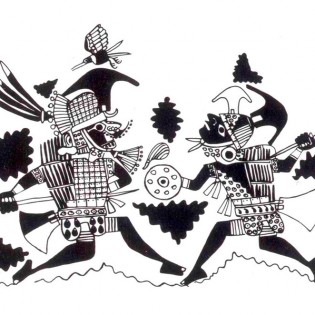 No sólo habían hombres animales, también la imaginación moche creó hombres vegetales, como los guerreros-poroto, con cuerpo de poroto, cabeza de animal y piernas humanas. ¿Qué similitudes y diferencias encuentras en estos guerreros-porotos y los guerreros moche? Búscalas.