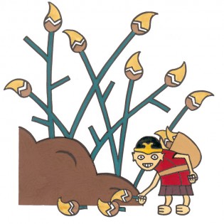 Luego de mucho andar, sintió que el peso del saco lo vencía y decidió dejar la carga donde su amiga guallata. El zorro le dijo: