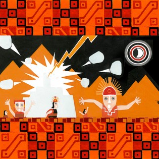 La única manera de salvarlos era invocando a los espíritus. Esperó que fuera de noche, y preparó sus bastones máficos y espadas de poder con formas de colobrí, buhí y otros animales. Comenzó a tocar tambores, a silbar y cantar llamando a los espítus protectores: