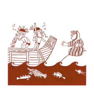 -¡Debes venir con nosotros!, en el mar estaremos bien. Sus cuñados lo bajaron de la roca, pero al acercarse al agua tuvo miedo nuevamente. Tres veces intentaron y cada vez retrocedió, hasta que finalmente lo arrojaron al agua y fueron tras él.
