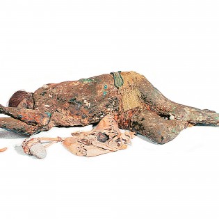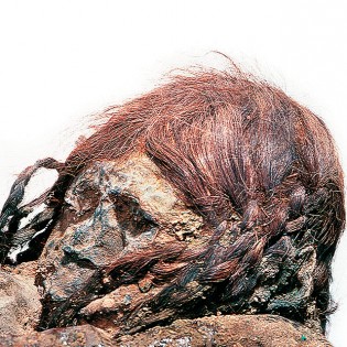 En 1899 se encontró un hombre momificado de manera natural en una mina de cobre de Chuquicamata, en el desierto de Atacama, norte de Chile. Este hombre era un minero atacameño que estaba trabajando en un pique cuando un derrumbe lo dejó atrapado y murió por asfixia hace 1400 años. Se le ha llamado “el hombre de cobre”, ya que todo su cuerpo se encontraba cubierto con el mineral de cobre que se le adhirió con el paso de los siglos. Este minero tenía su cabeza deformada intencionalmente y una larga cabellera peinada con múltiples trenzas. Junto a él se encontraron sus herramientas: martillos de piedra, palas de piedra y madera, palos, cestos y una bolsa de cuero de llama para transportar el mineral. Actualmente esta momia se encuentra en el Museo de Historia Natural de Nueva York. ¡Imáginate, la famosa mina de Chuquicamata era ya conocida y explotada por los indígenas atacameños hace más de 1400 años!