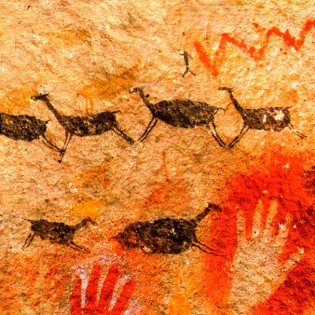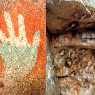 Al sur de Argentina, en la Patagonia, se encuentra la Cueva de las Manos, la que tiene en sus paredes hermosas pinturas rupestres. Estas fueron realizadas tanto en el interior como en el exterior de una cueva ubicada en un profundo acantilado. El lugar fue ocupado durante miles de años por distintos grupos humanos. Los primeros habitantes, de hace más de 9.000 años, pintaron escenas de cacerías de guanacos, figuras humanas y manos en negativo. Los habitantes posteriores siguieron pintando manos en positivo y negativo de variados tamaños y colores (rojo, violeta, blanco, negro, amarillo anaranjado, ocre y verde). La gran mayoría de las manos son izquierdas y pertenecen a niños, jóvenes y adultos, tanto de mujeres como hombres.