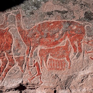 “La guanaca con cría”, como llaman los arqueólogos a esta pintura, debió ser pintada entre seis y tres mil años atrás, por algún ancestro de los aonikenk o tehuelche Está ubicada en el valle del río Ibáñez, 100 kilómetros al sur de Coyhaique, en la XI región de Chile, en un alero muy alto y de difícil acceso. El hecho de que solo se haya pintado este motivo tan chico en una enorme pared rocosa, lleva a pensar que se produjo en el marco de alguna ceremonia especial, restringida a unas pocas personas y no a todo el grupo.