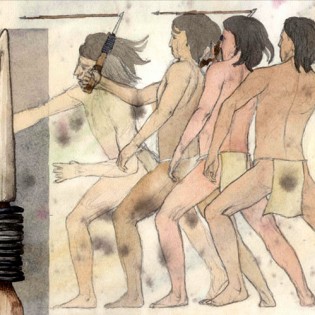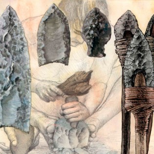 Las primeras armas fueron confeccionadas con piedras por los primeros habitantes de América. El dibujo muestra el proceso de fabricación de los tres tipos de puntas de proyectil más antiguas de América. Las puntas llamadas Clovis -la más temprana del continente- y Folsom, ambas de Norteamérica, y Fell, descubierta en la región de Magallanes. En la imagen se aprecia el proceso de fabricación de las puntas Clovis (izquierda), Folsom (centro) y Fell (derecha).