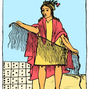 Los inkas desarrollaron un complejo sistema de anotación y registro narrativo a través de cuerdas anudadas, siguiendo una tradición textil fuertemente arraigada en las culturas andinas. A este instrumento le llamaron quipu. Con distintos colores y torsiones de los hilados hechos de fibra de llama o de algodón, junto con tres tipos de nudos diferentes dispuestos en distintas posiciones a lo largo de las cuerdas, podían expresar todos los números basados en un sistema decimal. Así, nudos simples ubicados en la parte de abajo de la cuerda, representaban el número 1 o nudos con dos o más vueltas, significaban las unidades 2 al 9. Subiendo por la cuerda, otros nudos simples señalaban las unidades de decenas y así sucesivamente con las centenas y miles hasta llegar al tope de la cuerda. La ausencia de nudo en alguna de estas posiciones, representaba el cero, lo que indica que este concepto abstracto también fue conocido en los Andes.