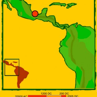 La cultura Olmeca floreció en las tierras bajas de Mesoamérica, junto al golfo de México entre los años 1200 y 200 a.C. Su arte en piedra alcanzó un gran desarrollo, realizando verdaderas joyas en jade y obsidiana. Construyeron grandes templos y pirámides, esculpieron estelas con forma de deidades y fueron autores de enormes esculturas de basalto conocidas como “cabezas colosales”. Sus principales centros ceremoniales en la costa del golfo fueron La Venta, San Lorenzo y Tres Zapotes. La deidad principal fue el felino, cuyos rasgos aparecen expresados en la boca de las figuras humanas y en una variedad de otras figuras. A través de la religión, la cultura Olmeca ejerció su influencia a lo largo de un extenso territorio , y se la ha considerado la primera gran civilización de Mesoamérica.