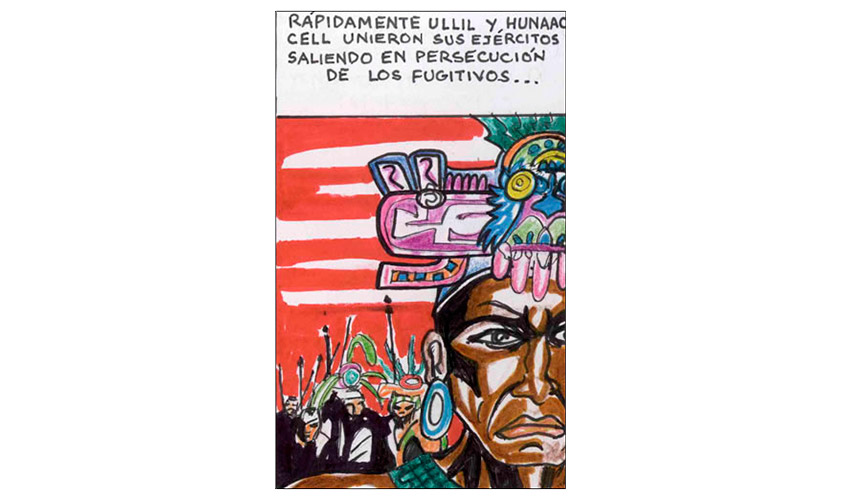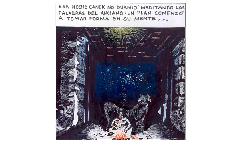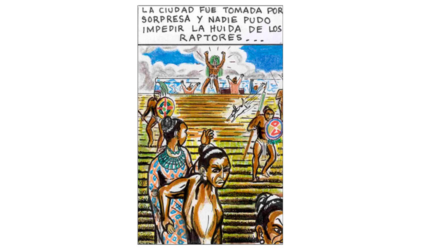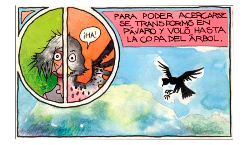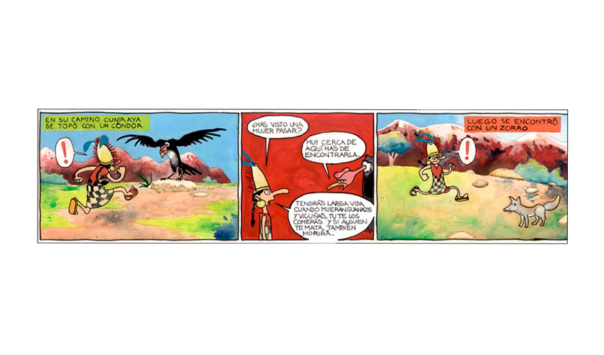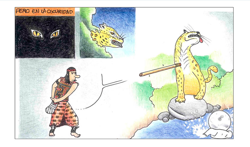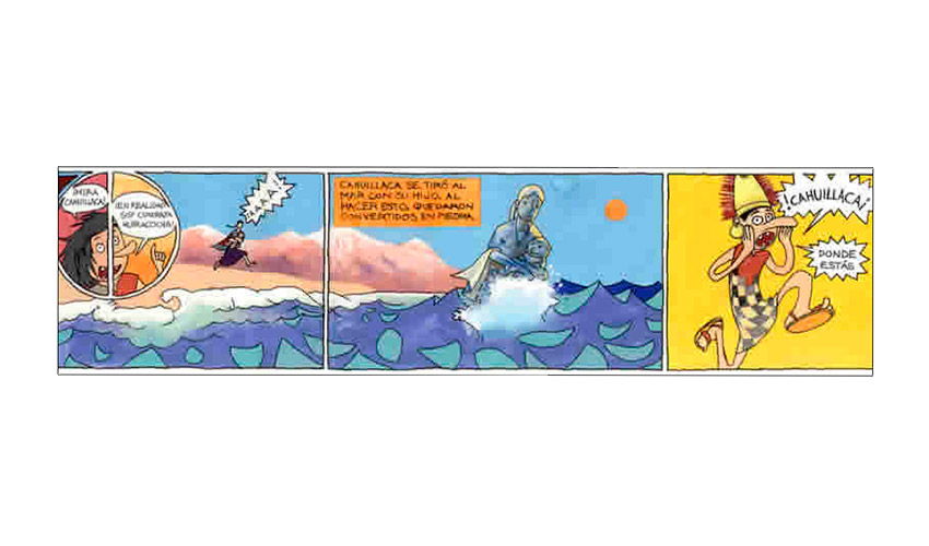 Entonces el Tata Sabaya, al ver que Mama Guanapa lo abandonó comenzó a tirarle piedras con su honda al Siyajualla. Y el Siyajualla, como era caperuzo con la honda, le respondió.