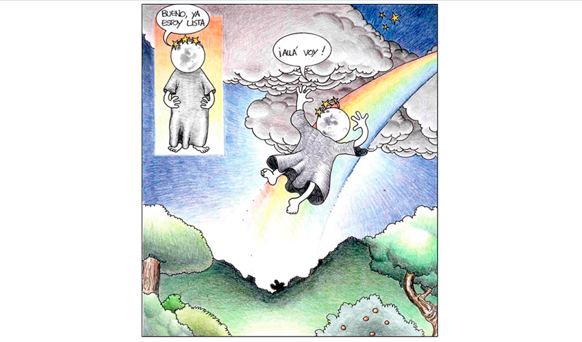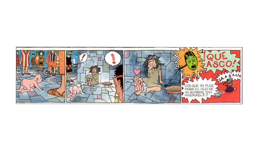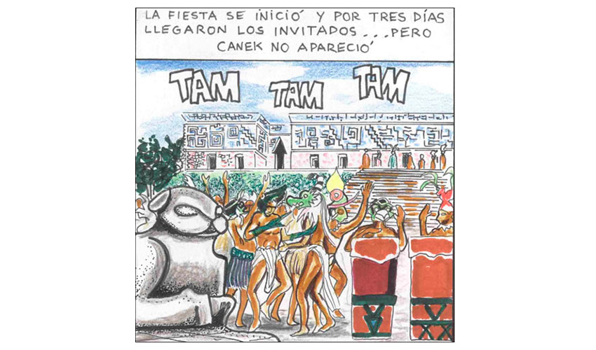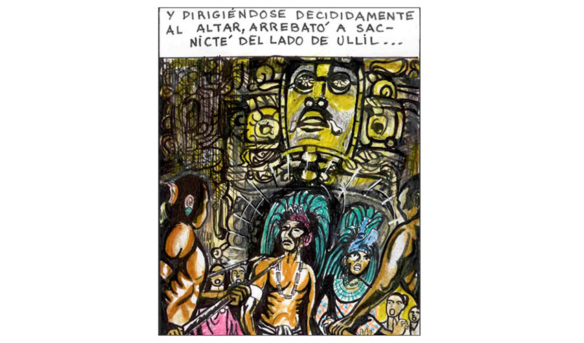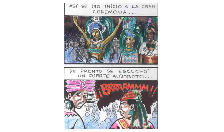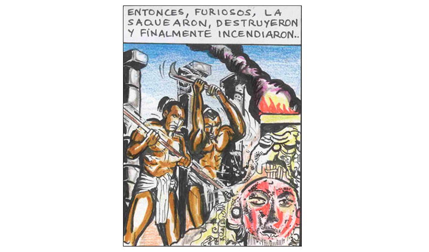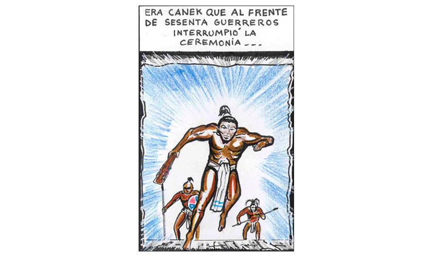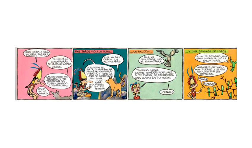 Entonces el Tata Sabaya, al ver que Mama Guanapa lo abandonó comenzó a tirarle piedras con su honda al Siyajualla. Y el Siyajualla, como era caperuzo con la honda, le respondió.
