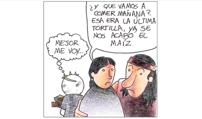 Pasados seiscientos años del nacimiento de los cuatro dioses hermanos, se juntaron y nombraron a Quetzacóatl y a Huitzilopochtli para que ellos dos ordenaran todo. Hicieron luego el fuego, y la mitad del sol, que no alumbraba mucho. Luego hicieron a un hombre y a una mujer: al hombre lo llamaron Oxomoco y a la mujer Cipactonal. A él lo mandaron a labrar la tierra, y a ella a hilar y a tejer. Debían trabajar siempre, no podían descansar. A ella le dieron granos de maíz para que curase y los usara en adivinanzas y hechicerías, como acostumbran a hacer hoy día las mujeres.