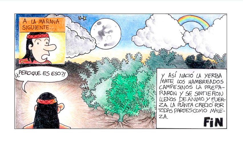 Una mujer llamada Nuse buscó la hierba perdida entre los sitios más ocultos y tenebrosos, pero todo fue inútil. Sin desanimarse, volvió donde sus hijos y reinició la búsqueda con ellos. Siguiendo el curso del río caminaron muchos días pero a medida que transcurría el tiempo, el hambre y el calor agobiante de esas tierras terminó por aplastarlos. De pronto en el río aparecieron pequeñas rodajas de un alimento desconocido: la yuca. Al verlas, Nuse se lanzó hacia el río y las tomó. Apenas probó ese alimento sabroso y dulce sintió que su ánimo renacía y enseguida corrió a alimentar a sus hijos. Entonces se dio cuenta que alguien la observaba desde el viento. Inquieta, hundió sus ojos por todos los rincones, pero sólo vio la soledad del desierto, hasta que apareció una bella mujer.