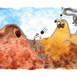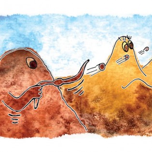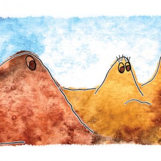 Entonces el Tata Sabaya, al ver que Mama Guanapa lo abandonó comenzó a tirarle piedras con su honda al Siyajualla. Y el Siyajualla, como era caperuzo con la honda, le respondió.