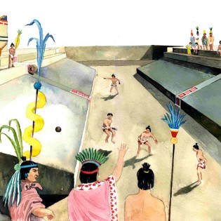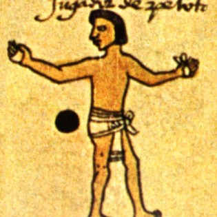 El juego de pelota, llamado Ulamalixtli en la lengua de los mexica es un juego ritual característico de las culturas mesoamericanas, practicado aproximadamente desde el año 1.000 a.C. hasta la actualidad. Se han encontrado restos de unas 600 canchas de juego de pelota pertenecientes a las culturas Olmeca, Veracruz, Tolteca, Maya y Azteca. Ellas forman parte del trazado arquitectónico de sus más importantes ciudades y centros ceremoniales. Desde el punto de vista deportivo, el objetivo del juego era introducir una pelota en uno de los dos anillos que se encontraban a media altura en los muros paralelos de una cancha de forma rectangular. Las pelotas eran fabricadas de caucho, muy sólidas y pesadas y no podían ser impulsadas con las manos, sino que debían ser golpeadas con el codo, antebrazo o cadera. Los jugadores se ponían unas almohadillas de cuero amarradas en estas partes del cuerpo como protección. Cuando un tiro resultaba ganador, los espectadores debían entregar como multa sus ropas y joyas al jugador que lo había realizado. Cuando esto ocurría los espectadores se arrancaban para no pagar y entonces los amigos del jugador corrían detrás de ellos.