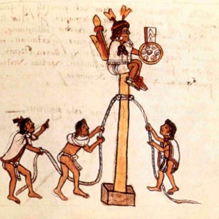 En las culturas mesoamericanas fue común el ritual de los voladores, tal como se aprecia en la imagen de este códice azteca. Todavía se sigue practicando la danza del volador en algunos pueblos de Centro América. Para realizar la danza se utiliza un tronco alto, fuerte y derecho que se entierra profundamente. En la parte superior hay un bastidor cuadrado al que se atan cuatro cuerdas. Cinco hombres, vestidos de águila o de otras clases de pájaros, suben con extraordinaria agilidad al tronco. Cuatro de ellos se amarran de las cuerdas y se cuelgan cabeza abajo con las alas extendidas. Mientras los cuatro voladores giran las cuerdas se van desenrollando hasta que los hombres llegan al suelo. Mientras tanto el quinto baila girando y tocando una flauta y un tambor en la punta del tronco. Esta danza de los voladores se relaciona con la agricultura y las estrellas.