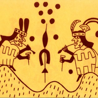 El uso ritual de las hojas del arbusto de la coca ha sido muy importante en los Andes desde tiempos prehispánicos. Ha sido usada como ofrenda, para hacer adivinación y como consumo cotidiano. Se ha encontrado como ofrenda a los dioses en los sacrificios de altura de distintas cumbres de cerros. La coca ha sido compartida entre los hombres desde hace mucho tiempo, como se puede ver en el dibujo de la cerámica moche de la fotografía. Cada hombre tiene en sus manos una calabaza que contiene hojas de coca molida que sacan con una cuchara o espátula. Este mismo modo de consumir la coca se observa actualmente en el pueblo Kogui de Colombia.