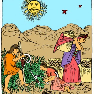 En la actualidad, los sabios andinos saben “leer las hojas de coca”. Éstas son tiradas sobre una tela e interpretadas según la posición en que caen. Además, las hojas de coca se consumen cotidianamente, pues poseen la cualidad de dar energía y quitar el hambre. Estas hojas, desde tiempos muy antiguos y hasta la actualidad, han sido llevadas en pequeñas bolsas tejidas llamadas chuspas.